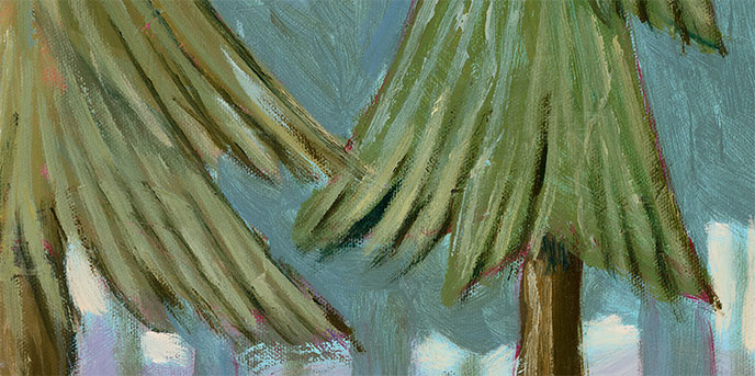 | "Three Trees in the Forest" by Charles Kaufman 50 x 100 cm / Growing up in Oregon, I was always surrounded with forests of tall, green Douglas Fir trees. |